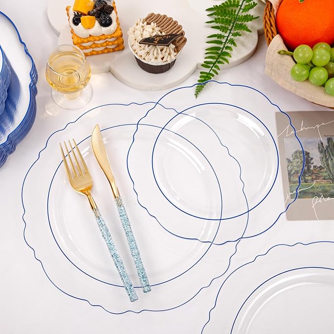 - SUITABLE FOR ALL OCCASIONS - These clear plates for party are suitable for almost any occasion, such as weddings, summer days, baby shower, bridal shower, birthday parties, and sisters' tea time is also perfect. We hope our blue party plates can accompany you through every beautiful and cozy time at any time!