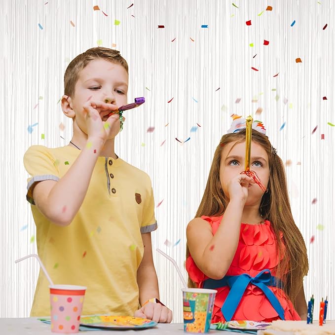 - Eye-Catching Design: These white foil fringe tinsel backdrops boast vibrant colors and a shimmering effect that reflects light beautifully. Your friends will be mesmerized by the captivating atmosphere these curtains create