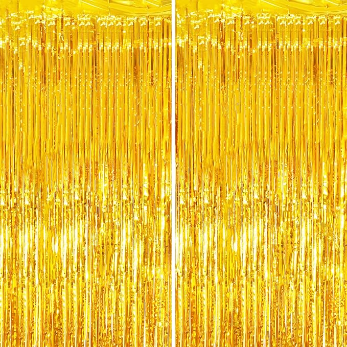 2 Pack Gold Tinsel Foil Fringe Curtains, Gold Party Decorations, Metallic Tinsel Party Streamers Backdrop for Birthday Baby Shower Graduation Wedding New Year Party Decorations