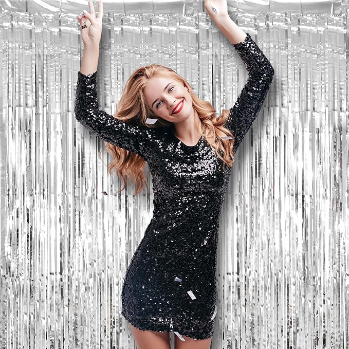 - Eye-Catching Design: These silver foil fringe tinsel backdrops boast vibrant colors and a shimmering effect that reflects light beautifully. Your friends will be mesmerized by the captivating atmosphere these curtains create