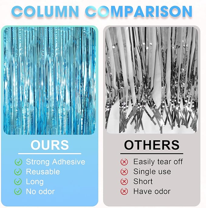 - Eye-Catching Design: These blue foil fringe tinsel backdrops boast vibrant colors and a shimmering effect that reflects light beautifully. Your friends will be mesmerized by the captivating atmosphere these curtains create