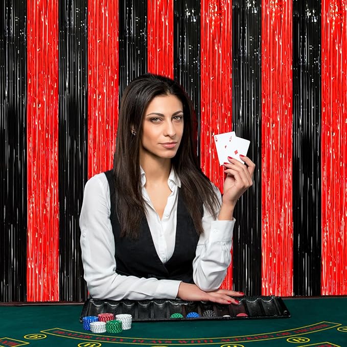 - Eye-Catching Design: These red black foil fringe tinsel backdrops boast vibrant colors and a shimmering effect that reflects light beautifully. Your friends will be mesmerized by the captivating atmosphere these curtains create.