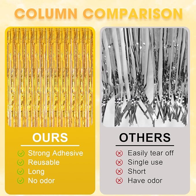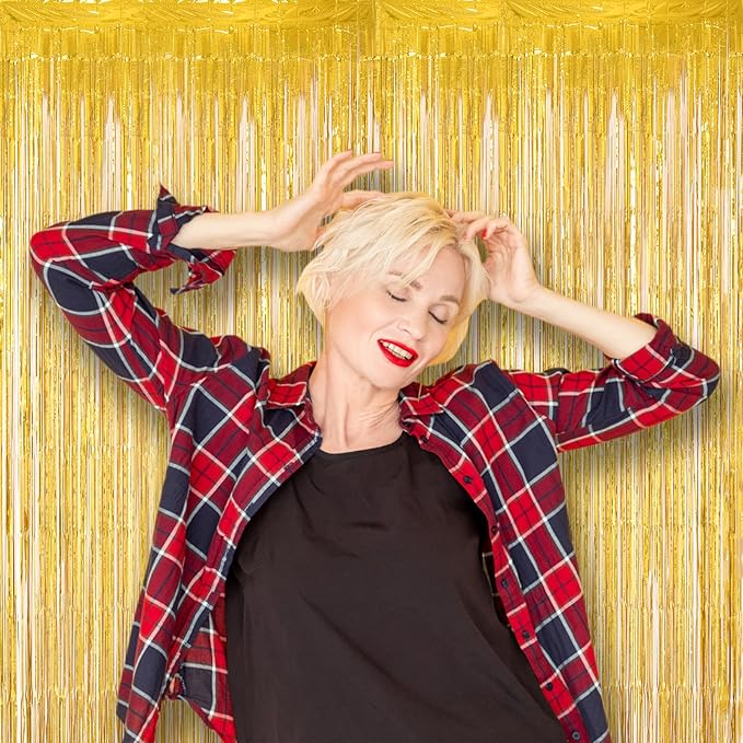 - Premium Quality: Crafted from shiny PET tinsel, these gold fringe curtains are designed to be light weight, easy to hang, and resistant to wear and tear. The metallic party streamers reflect light beautifully, creating a mesmerizing visual effect