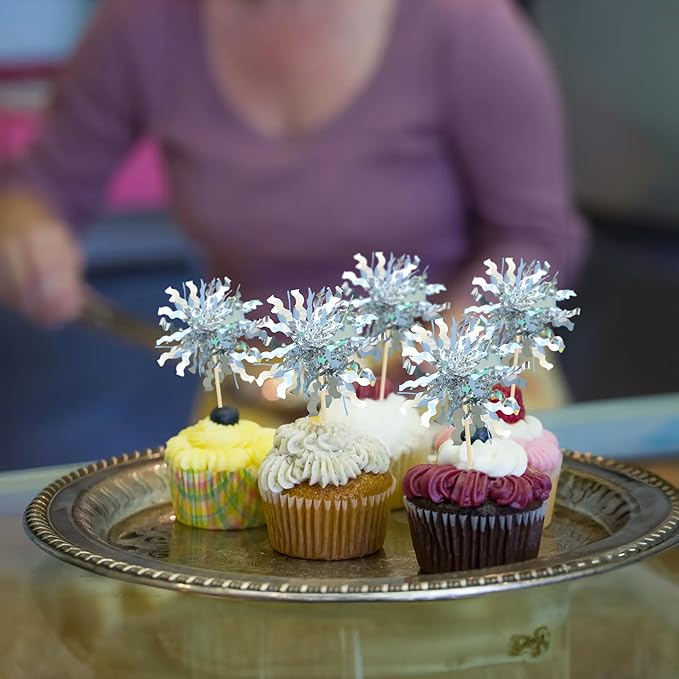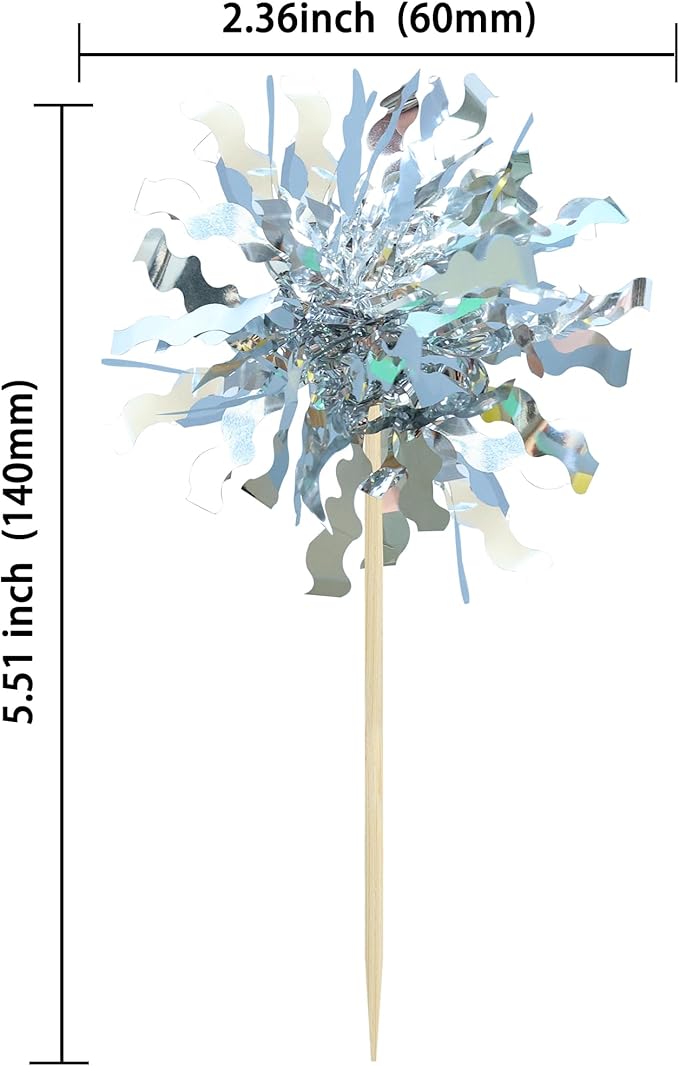 Gyufise 30Pcs Foil Firework Cupcake Toppers Sparkle Tinsel Cake Toppers Tinsel Drink Cake Decoration Cocktail Picks for Birthday Wedding Graduation Party Supplies Silver