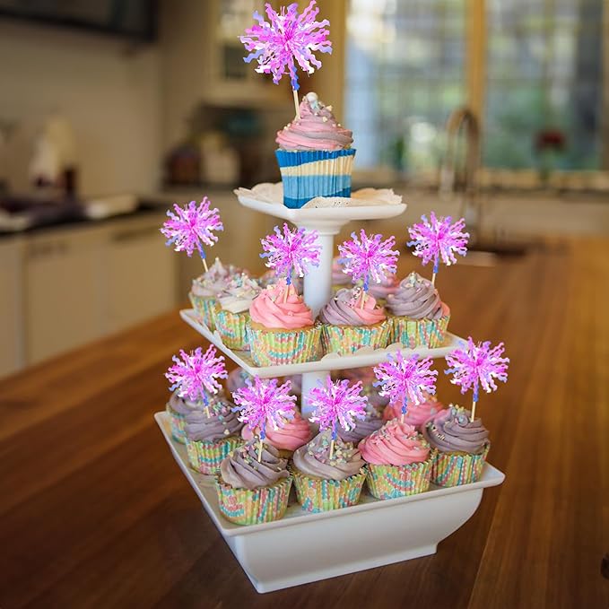 - -Premium Material: These Foil Firework Cupcake Toppers are made of high quality foil and food-grade toothpick, very safe to put them on cakes, cupcakes, ice cream, fruits, pie, dessert, cheese or any dish and food appetizer you want to decorate.