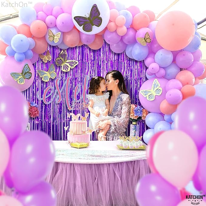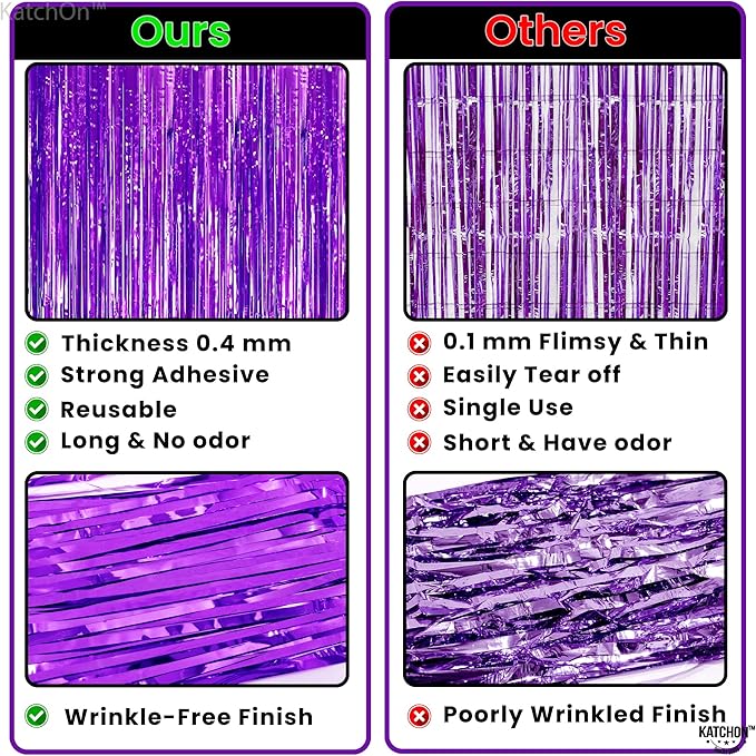 KatchOn, Metallic Purple Foil Fringe Curtain - Pack of 2 | Streamer Backdrops For Purple Birthday Decorations | Bachelorette, New Year, Halloween Decorations Indoor | Unicorn, Mermaid Party Decoration