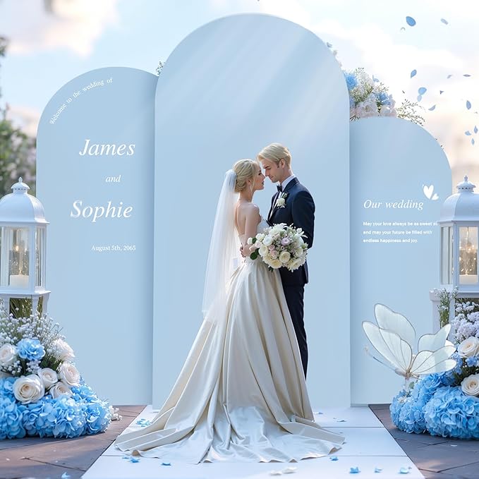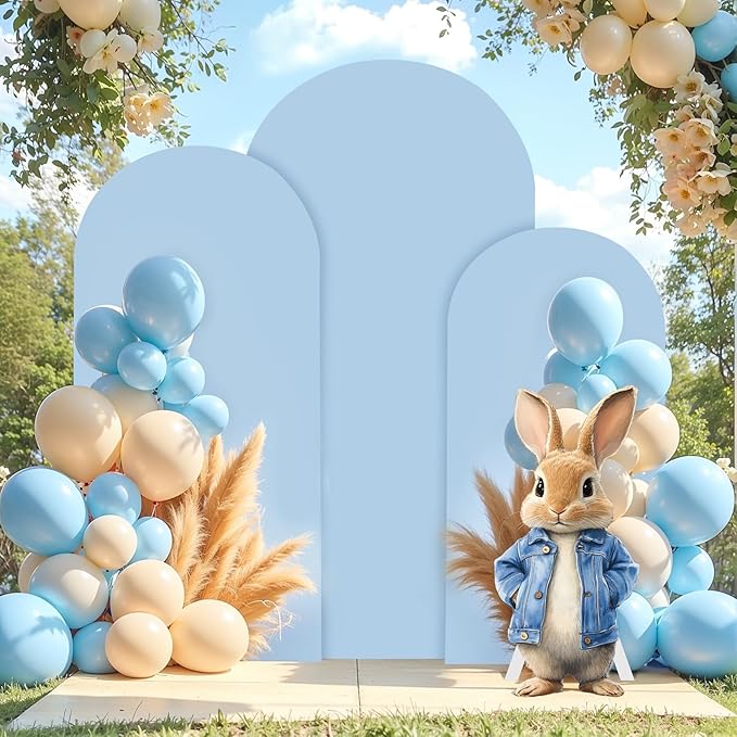 (7.2FT, 6.6FT, 6FT) Wedding Arch Cover Set of 3 Baby Blue Spandex Fitted Arch Cover for Round Top Chiara Backdrop Stand Covers for Birthday Party Banquet Photo Background Decoration