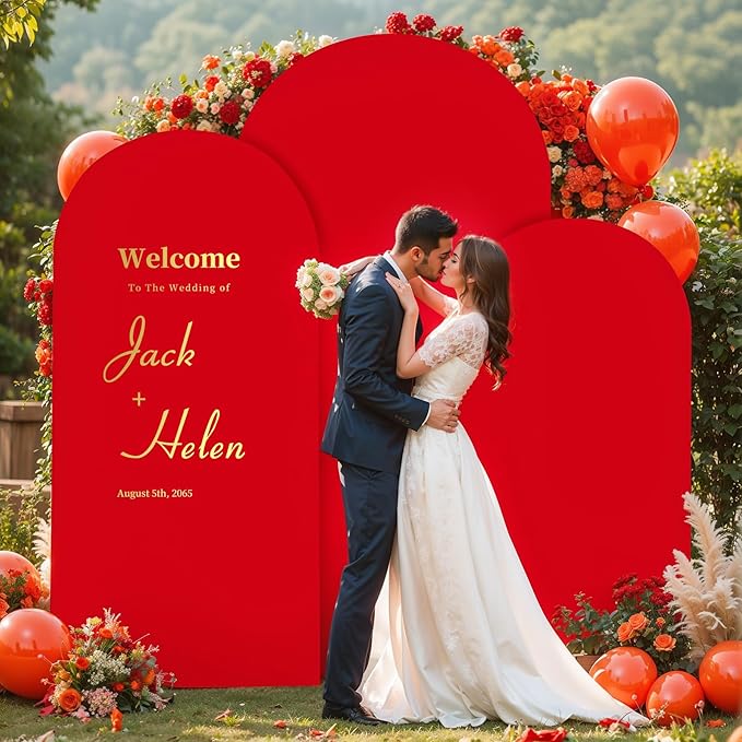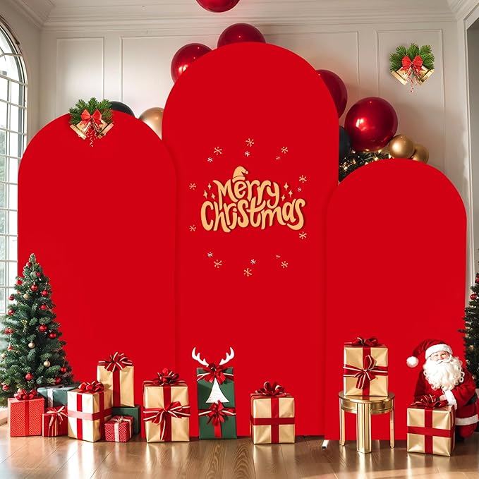 (7.2FT, 6.6FT, 6FT) Wedding Arch Cover Set of 3 Red Spandex Fitted for Round Top Chiara Backdrop Stand - Birthday Party Banquet Photo Background Decoration