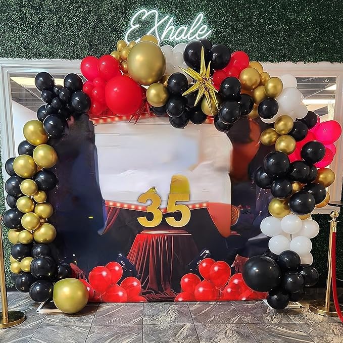 - What's Included: Enhance your party with our Red Black and Gold Balloon Kit! This set features 20 red balloons, 20 black balloons, 10 gold confetti balloons, 10 metallic gold balloons, all sized at 12 inches. Plus, we've included 2 balloon ribbons to perfect for your black and red theme decor.