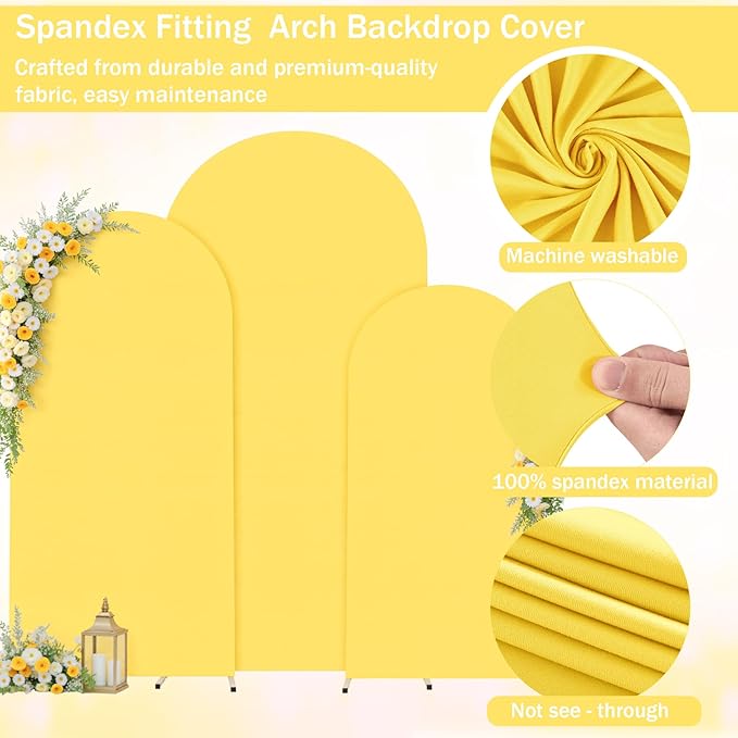 (7.2FT, 6.6FT, 6FT) Wedding Arch Cover Set of 3 Yellow Spandex Fitted Arch Cover for Round Top Chiara Backdrop Stand Covers for Birthday Party Banquet Photo Background Decoration