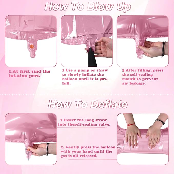 - π Easy to Use: The pearl pink alphabet balloon has holes at the top and bottom, so you can hang it in the air with a string. After use, a long straw can be inserted into the filling hole and gently pressed to deflate, and then folded up for the next use. The simple inflatable process of light pink letter balloon allows you to quickly complete the decoration for easy hanging or display at your perfect party.
