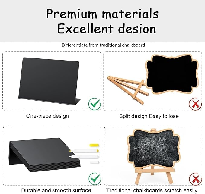 - Versatile for Indoor Events: Ideal for birthdays, weddings, and parties, these signs can label food, display table numbers, attach price tags, and more. ***Avoid outdoor use to prevent warping from sunlight