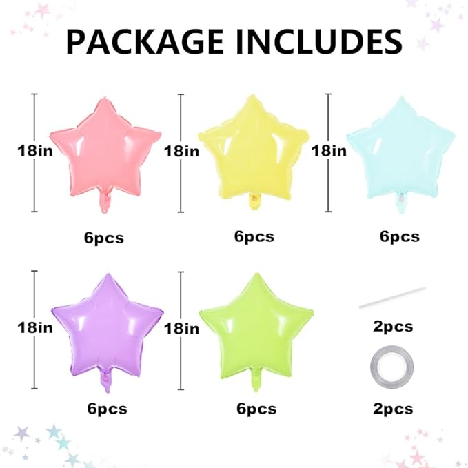 - PACKAGE CONTENT: You will get 30pcs 18inch star foil balloons with 2pcs straw and 2pcs ribbon in a wide range of quantities to suit your decorating needs.