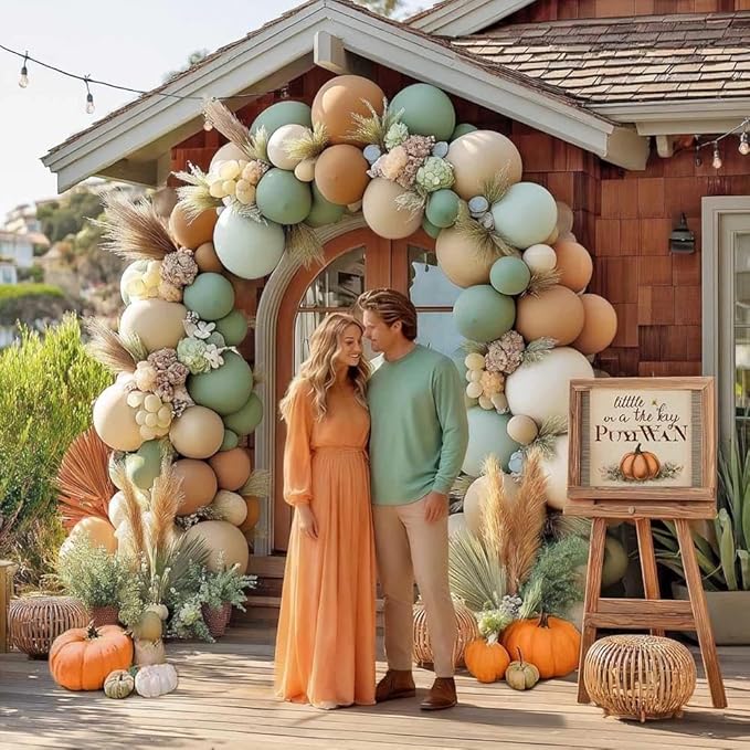 - VERSATILE - Create a stunning dusty green balloon garland with ease; Just inflate the double stuffed balloons, insert sage green and cream white balloons into the strip, and shape it with ribbon and glue dots; Hang over tables, doorways, or anywhere! Used for neutral gender reveal, baby shower, bear party, jungle safari, birthday, wedding, fall, pumpkin party etc