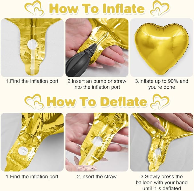 - 【EASY USE】Our heart shaped foil balloons are very easy to inflate,the straw inside the package helps you to inflate the balloon, the balloon can be filled with air and helium,after filling the balloon,you can pinch your finger to the position of the inflatable mouth to seal it automatically.