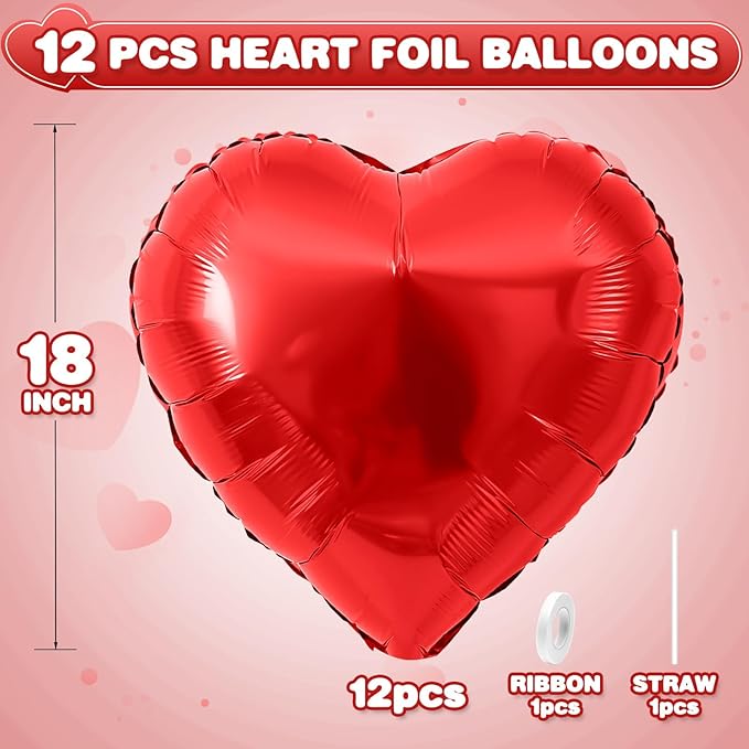- Included Components : 12pcs 18Inch red heart foil balloons, 1pc straw