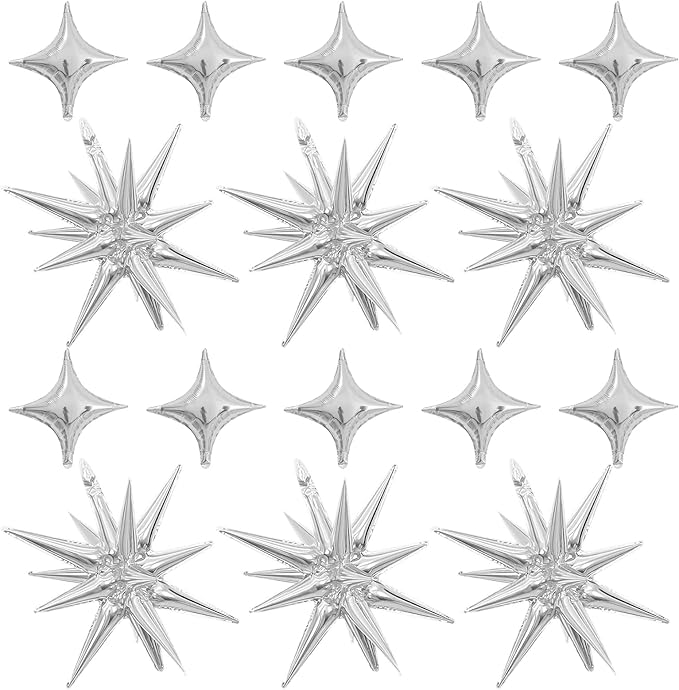 - Included Components : 6pcs 22inch silver explosion star balloons, 10pcs 10inch silver four pointd star balloons