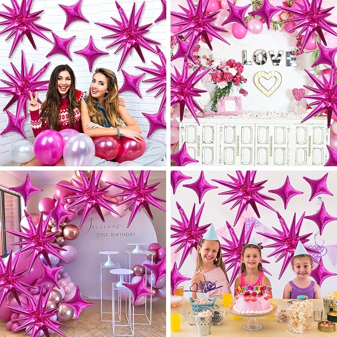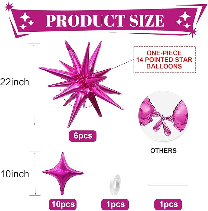 - Hot Pink Star Balloons Set:Package include 6pcs 22Inch hot pink explosion star balloons,10pcs 10Inch hot pink four pointd star balloons.Large enough to help you better decorate your party.