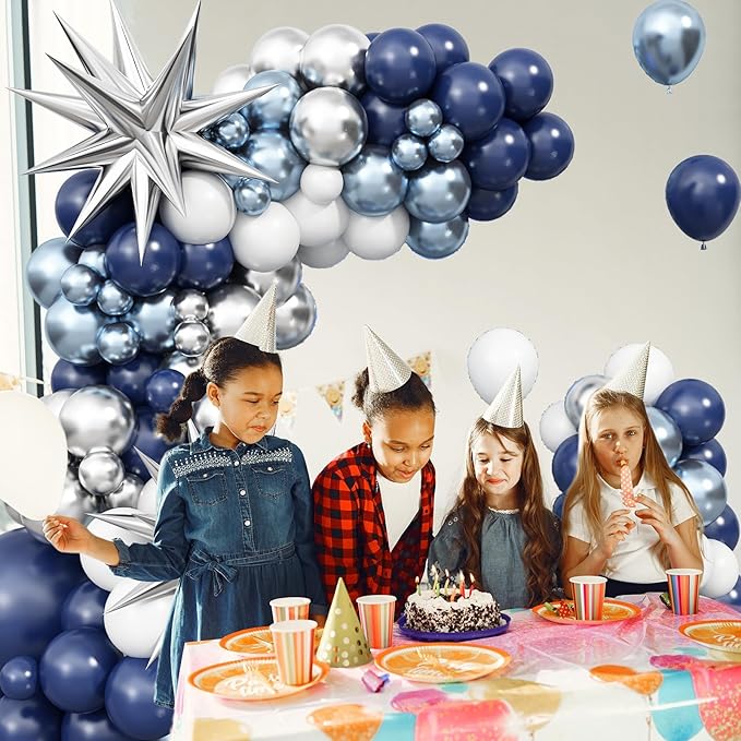 - 【Premium Quality 】 - We take great pride in the quality of our navy blue silver white party balloons set, which have undergone rigorous testing to ensure their safety for children. All of balloons are crafted of decent aluminum foil or strong latex, thick and long-lasting, non-toxicity and harmlessness. Unlike ordinary balloons, they are more plump in color, do not explode, and can support all day parties.