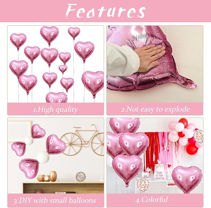 - Premium Materials: Our light pink heart balloons are made of premium materials, safety foil, which makes them long-lasting, glossy, and beautiful in shape. They feature adds a touch of elegance and class to any event. These foil heart-shaped balloons will create an exclusive sweet atmosphere for your party.