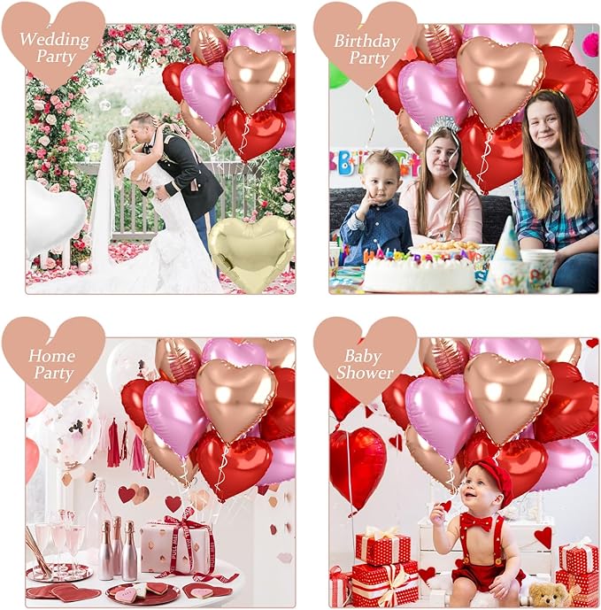 - Versatile Decoration: Our rose gold pink heart valentine balloons are ideal for a wide range of celebrations, including boy's and girl's birthday parties, baby showers, Valentine's Day decorations, wedding parties, bridal showers, princess parties, anniversaries, and more. They are perfect for balloon bouquets, home and table decor, wedding aisle decoration, photo backgrounds, party supplies, and other events.