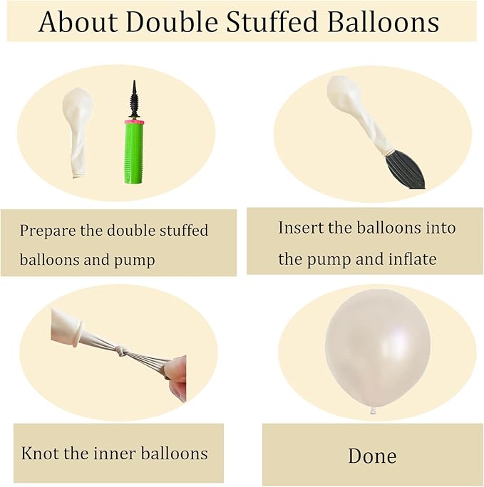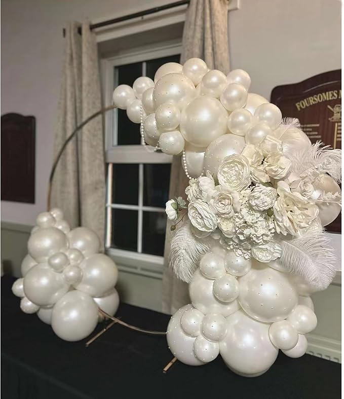 - 【PERFECT WEDDING PARTY DECORATIONS】 The double stuffed balloon garland is perfect for wedding party decorations, bride shower , Engagement,anniversary, kid's birthday party and themed party decorations. And the pearl sticker make the pearl balloons more elegant!
