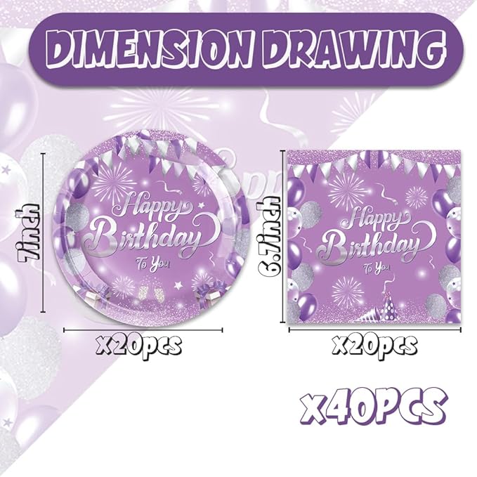 - 【Vibrant Design】:Get the party started with our elegant purple silver style design! purple birthday plates and napkins features a stylish purple silver color and cheerful "Happy Birthday" wishes. Suitable for both women girls, these purple silver birthday party plates make fantastic decorations for your unforgettable glitter party.