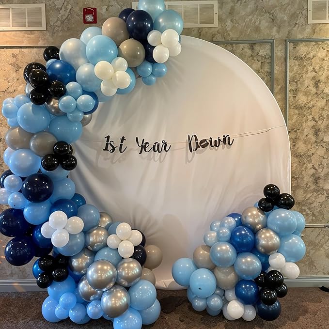 - 🎈Package Includes - You'll get 35 pieces 12 inch party balloons (6pcs navy blue balloons, 6pcs metallic blue balloons, 6pcs metallic light blue balloons, 6pcs metallic silver balloons, 6pcs white balloons, 5pcs silver confetti balloons) and 1 roll of 10m ribbon, which are enough to decorate your party, these dazzling colors will make your party very attractive, a great way to decorate any theme party. You can make balloon backdrop, balloon arch garland, balloon bouquet decorations and more.