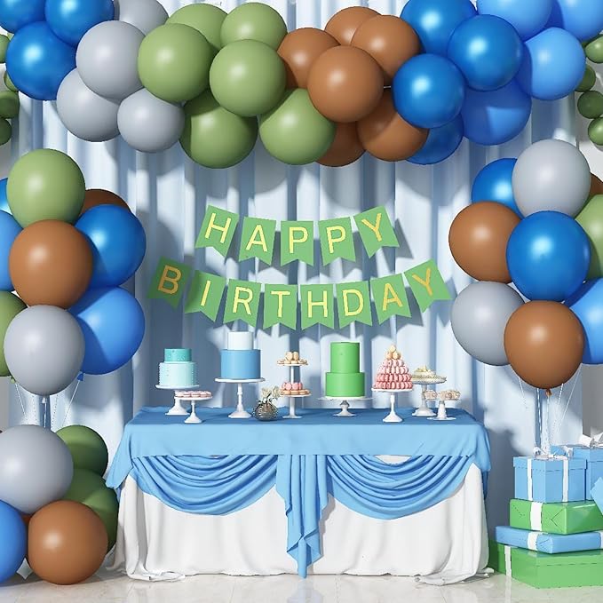 Blue Green Balloons 60 Pcs 12 Inch Sage Green Blue Brown Balloons Neutral Boho Avocado Green Pearl Dark Navy Blue Khaki Brown Grey Balloon for Boys Bear Jungle Baby Shower Birthday Party Decorations