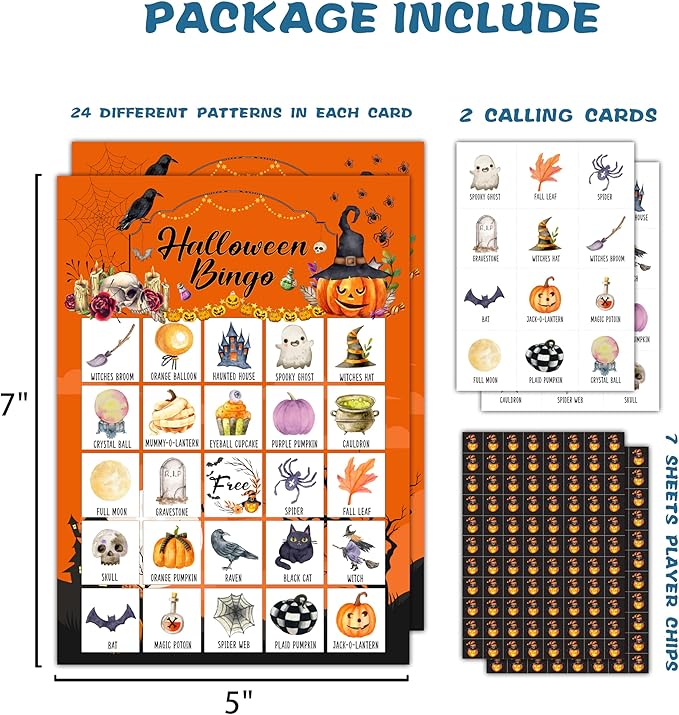 - Package includes: 24 unique bingo player cards, 7 marking chips, and 24 caller chips. It could meet the needs of your party up to 24 players, it’s perfect for your important event.