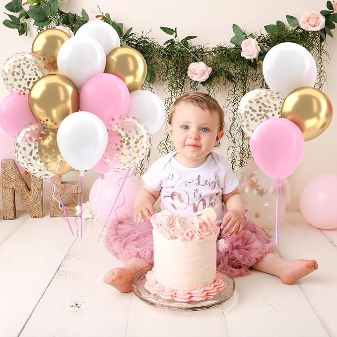 Patimate Pink Gold Confetti Balloons Set, 50 pcs 12 inch Metallic Gold Pastel Pink White Confetti Latex Balloons Kit for Birthday Baby Shower Girl Princess Party Decorations
