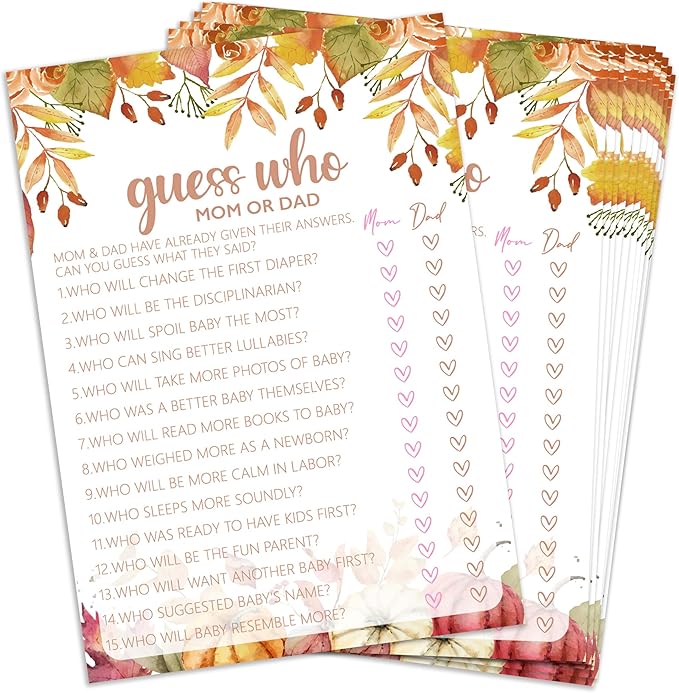 Guess Who? Game Cards, Autumn Baby Shower Games Cards, Thanksgiving Boy or Girl Baby Gender Reveal Party Favors Decorations and Supplies, 25 Pcs Double-Sided - E03