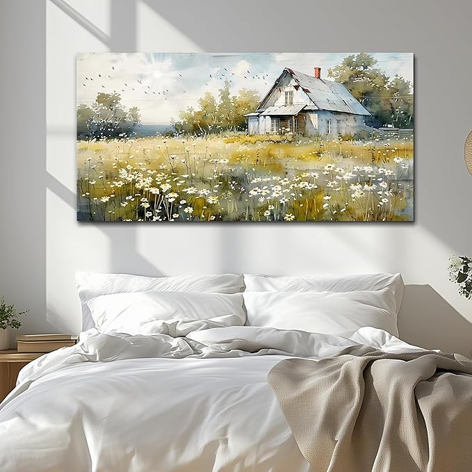 FUHAIHUA Canvas Wall Art For Living Room Large Wall Decor For Office Bedroom Wall Decorations Rural Landscape Paintings Farmhouse Watercolor Pictures Artwork Hotel Aesthetic Home Decor 20x40 In
