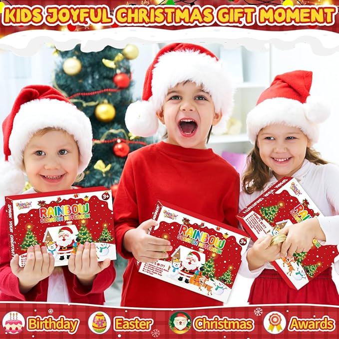 - Cool Christmas Gifts for Kids - Maybe you are still considering Christmas stocking stuffers gifts or birthday gifts for kids, these rainbow scratch notebooks great for kids birthday party favors, school classroom rewards, classroom treasure box, carnival prizes, christmas stocking stuffers, Christmas giveaways, goodie bag fillers, family fun days, creative coloring activities in the classroom, road trips. This bulk toys set is the perfect gift for boys, girls or teenagers
