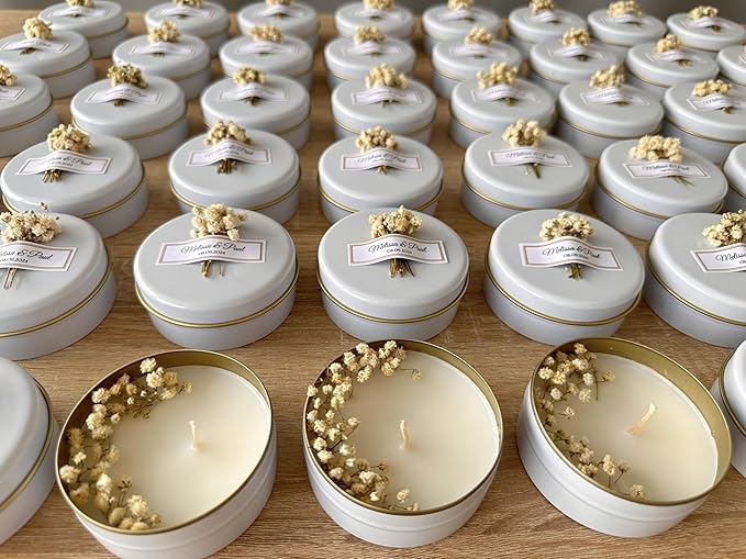 Scented Soy Wax Candle Favors with Dried Flowers - Personalized for Weddings, Bridal Showers, Baby Showers, Birthdays (10-20-30-40-50-100 PCS in Bulk)