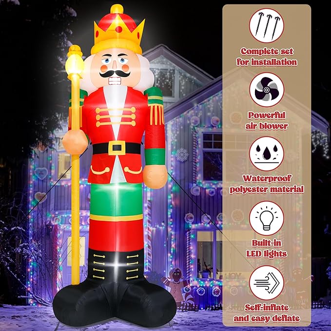 - Extra Large Design - This Christmas Soldier Inflatable Light is 14FT tall wears a soldier's costume and holds a scepter. Standing majestically at the door, guarding the family, driving away evil spirits and dangers.