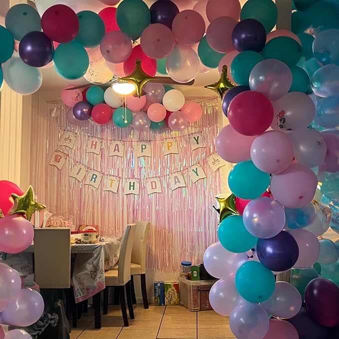 - Warm Tips: Please be careful not to overfill the balloon to avoid bursting. Please avoid sharp objects or sunlight. Please note that there will be a certain color difference before and after inflation. Balloons are a suffocation hazard, please keep these pink purple teal balloons out of the reach of children, and children must be supervised by adults when using them