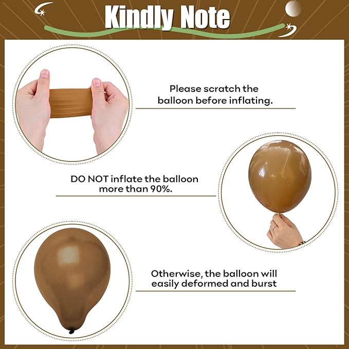 - Warm Tips: Please be careful not to overfill the balloon to avoid bursting. Please avoid sharp objects or sunlight. Please note that there will be a certain color difference before and after inflation. Balloons are a suffocation hazard, please keep these green and brown balloons out of the reach of children, and children must be supervised by adults when using them.