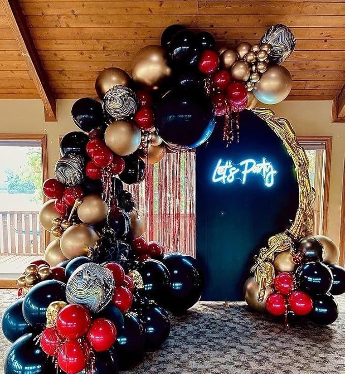 - Superior Material: These red black and gold balloons are made of premium latex material with excellent elasticity and durability, which ensures they won't burst or deflate easily. This balloon set is suitable for both air and helium inflation, kid and pet friendly, and a colorful party decoration of choice.