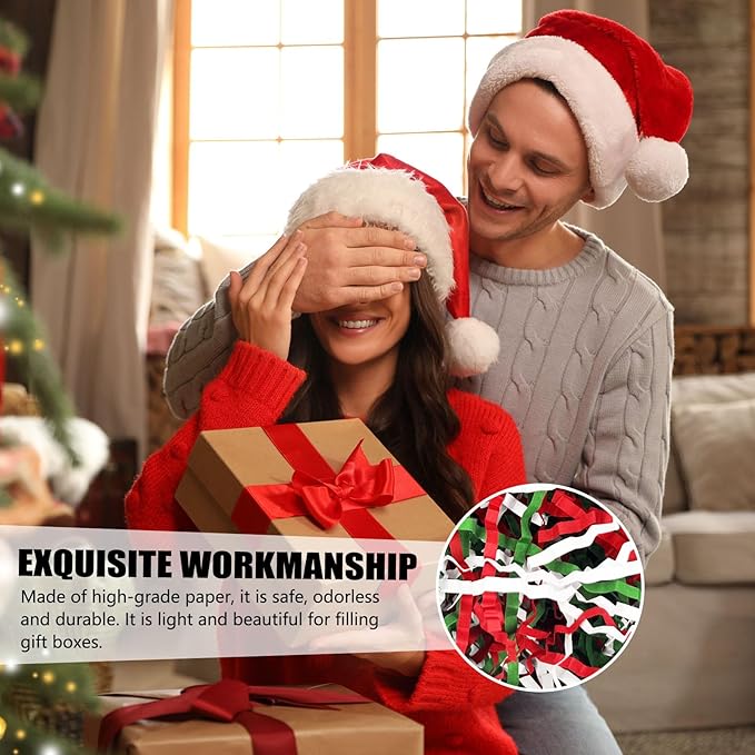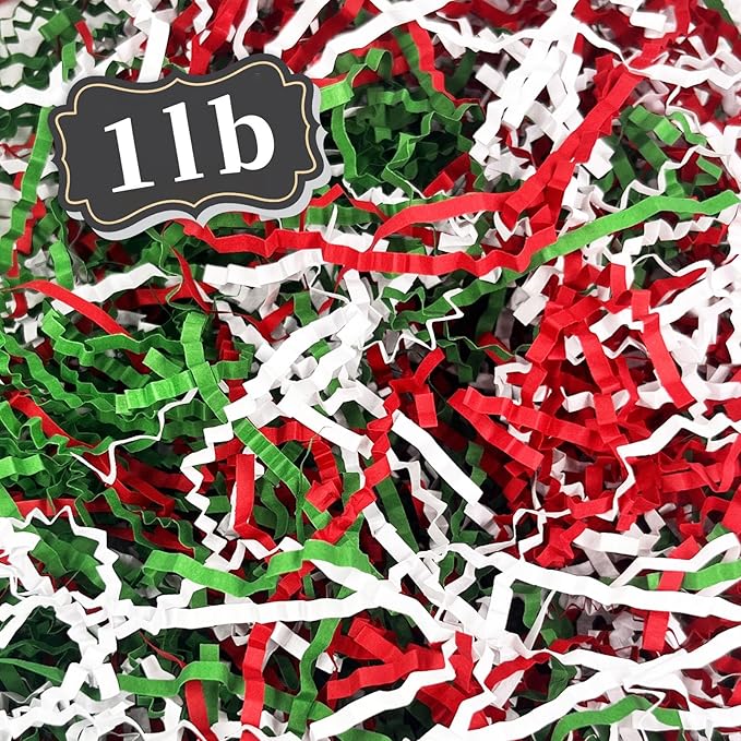 1 LB Red Green White Crinkle Cut Paper Shred Filler Great for Gift Wrapping, Basket Filling, Birthday, Wedding, Halloween, Thanksgiving, Christmas Day, New Year Party Decorations Filling Supplies