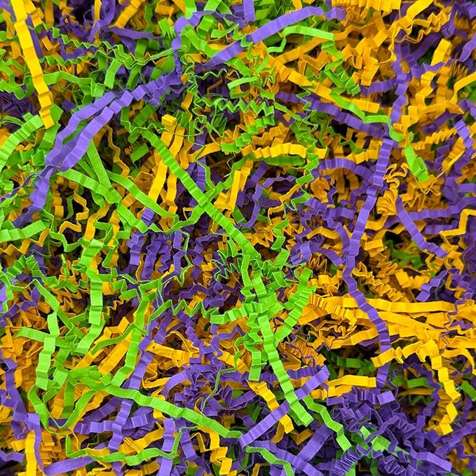 1 LB Gold Green Purple Crinkle Cut Paper Shred Filler Great for Gift Wrapping, Basket Filling, Birthday, Wedding, Mardi Gras, Carnival, Christmas Day, New Year Party Decorations Filling Supplies