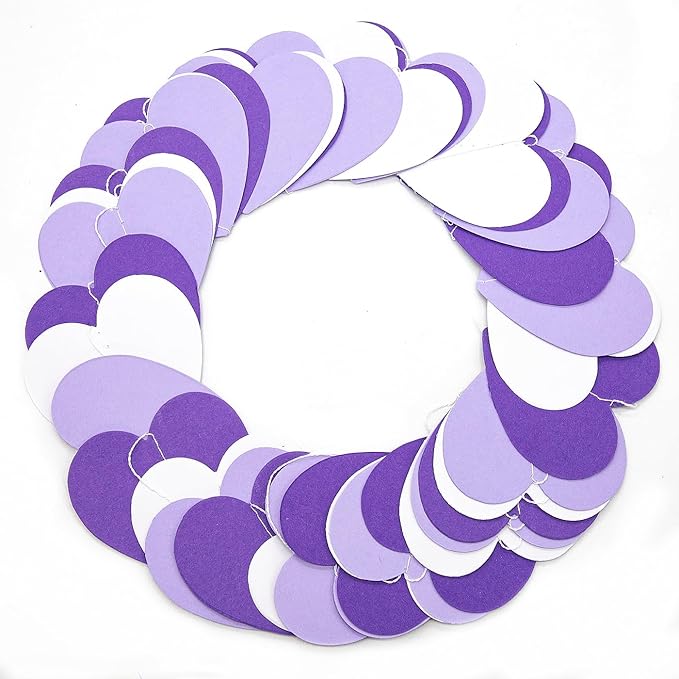 - 【Package Including】The decorations kit include 4 pack paper heart garland in 3 colors white,light-purple,purple,each garland is approx 13 feet in length,totally 52 feet in length.Each one has 40 pieces of paper heart 1.97".