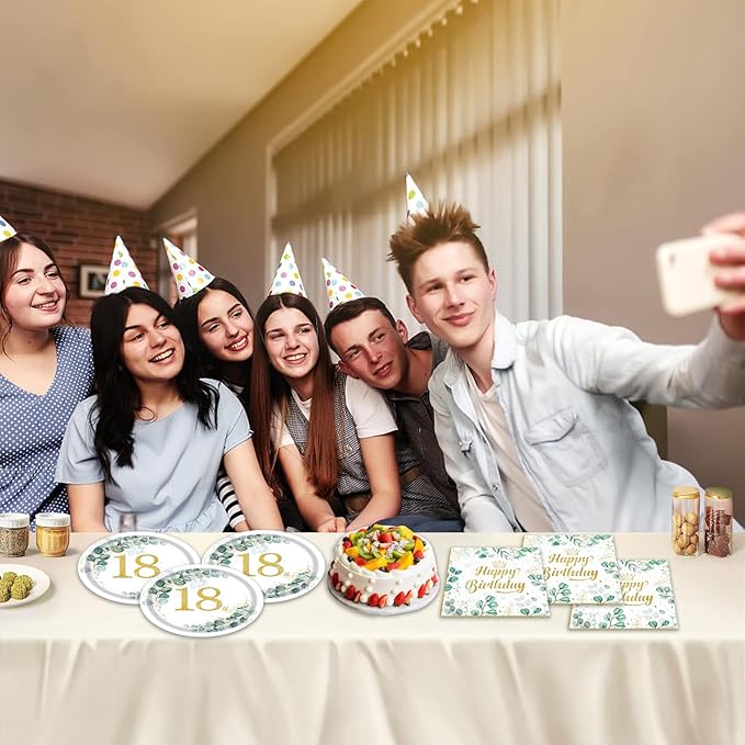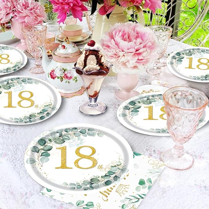 - [Widely Used]:Whether you're a boy or a girl, our green sage design dinnerware will liven up your 18th birthday party, and here's wishing you a “Happy Birthday”!