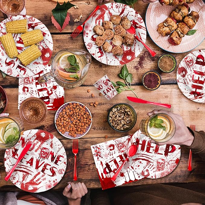 - 【Applicable Occasions】This Halloween themed party tableware set is perfect for your Halloween party, suitable for Halloween party, zombie role-playing party, crime scene party, Halloween haunted house and vampire theme party, bringing more Halloween atmosphere