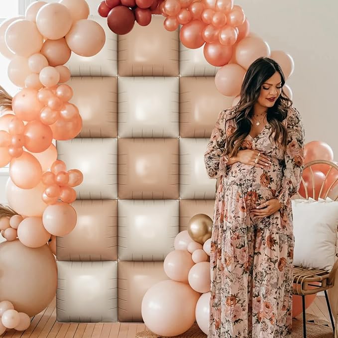 Cream Square Foil Balloon Wall, 25 PCS Double Sided Khaki Apricot Balloons Matte Beige Nude Balloon Backdrop for Baby Shower Decoration Wedding Boho Birthday Party Decoration