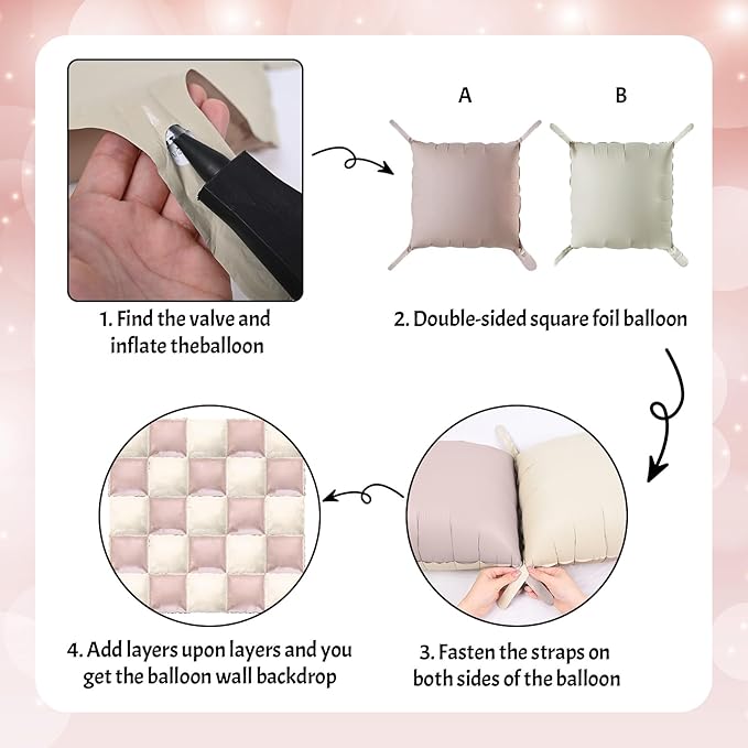 - Cream and Pink Balloons: This matter pink and sand square balloon set adds a lovely touch to any celebration. The combination of colors is perfect for girls' baby showers, bridal shower, wedding, and birthday parties
