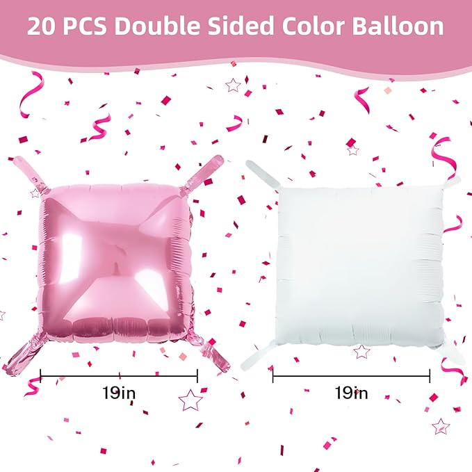 Pink and White Square Balloon, 20 PCS Double Sided Foil Balloons Wall Flat Square Balloon Backdrop for Girls Coquette Birthday Decoration Bridal Baby Shower Party Decoration