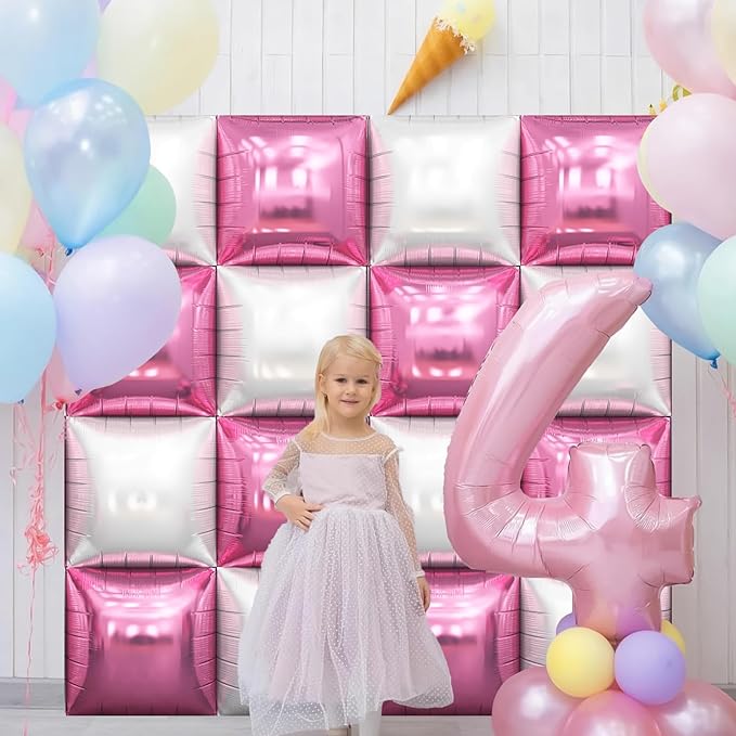 - Pink and White Balloons: This delightful pink and white square foil balloon set adds a sweet and cheerful touch to any celebration. The color scheme is perfect for girls' birthdays, anniversaries, and baby showers