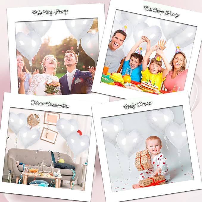 24 White Heart Balloons, 18 inch Heart Shape Foil Balloons for Love, Valentine, Birthday, Wedding, Engagement, Baby Shower & Valentine Day Decorations