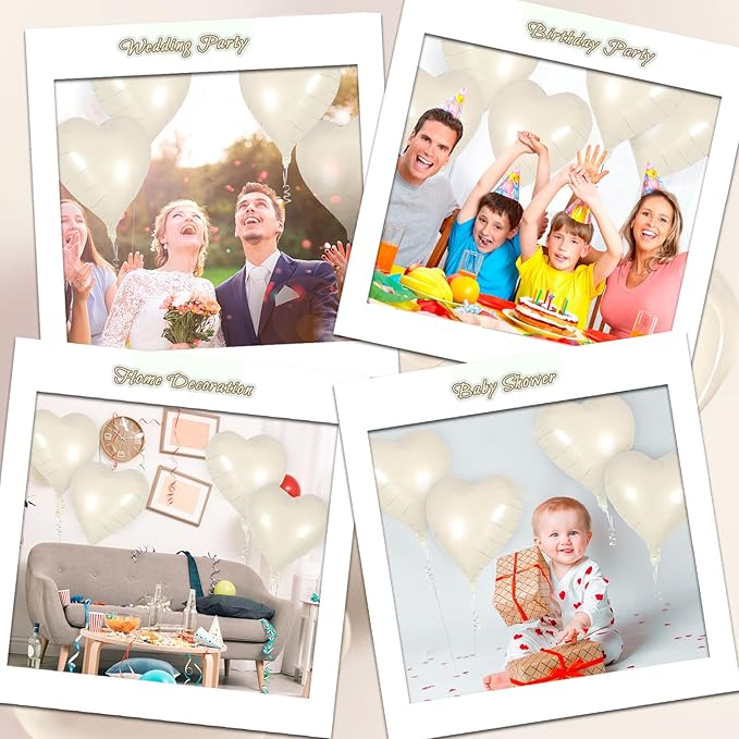 24 Cream Heart Balloons, 18 inch Heart Shape Foil Balloons for Love, Valentine, Birthday, Wedding & Engagement Parties, Baby Showers & Valentine Day Decorations